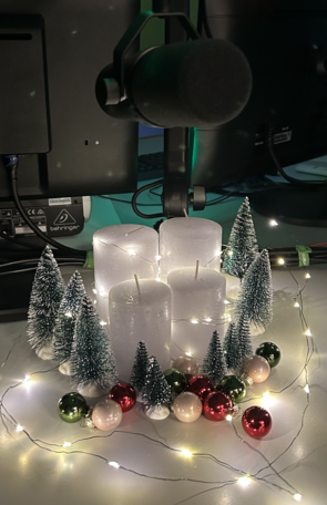 Das Studio ist bereits weihnachtlich angehaucht. Die ModeratorInnen sind ebenfalls bereits in besinnlicher Stimmung. Aber sicherlich wird es in der Heilig Abend Sendung nicht nur feierlich und festlich. Geplant ist ein Brett- oder Kartenspiel während der Sendung zu spielen und die HörerInnen live teilzuhaben zu lassen. Vielleicht reicht die Zeit auch für beide Spiele.