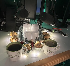 Bevor die Sendung jedoch losging, wurde das Studio wieder hergerichtet, denn die gut duftenden Muffins und der Kaffee sollte die beiden Moderatorinnen schließlich nicht ablenken!
